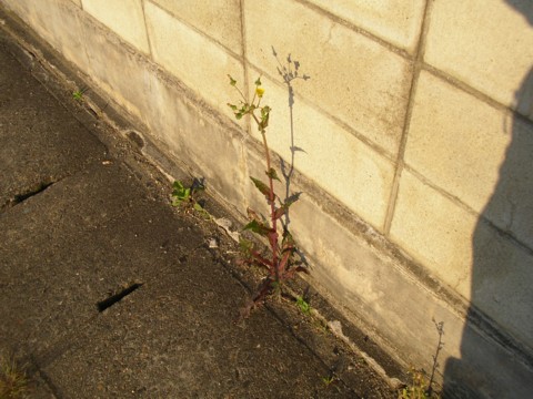 側溝とコンクリート塀の間から、